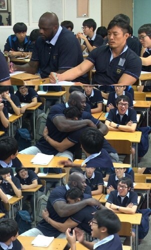 이날 방송에서 샤킬오닐과 추성훈은 교실에서 나란히 앉았다. 샤킬오닐과 추성훈은 인사를 하며 끌어안았다. 덩치로는 왠만하면 밀리지 않는 추성훈이지만, 216cm의 140kg이 넘는 샤킬 오닐 앞에서는 작은 아이와 같은 모습이었다.