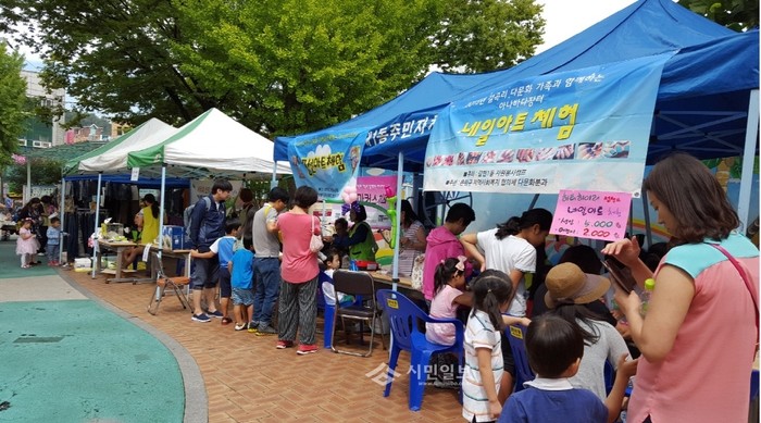 은평구 갈현1동 주민자치위원회는 최근 갈곡리어린이공원에서 주민 500여명이 참여한 ‘갈곡리마을 벼룩시장’을 개최, 주민들이 풍선·네일아트 체험을 하고 있다.(사진제공=은평구청)