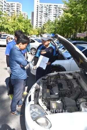 서울 노원구가 지난 16일 오전 10시 노원구 중계동 중계근린공원내 공영주차장에서 '추석 귀성 자동차 무상 안전점검 행사'를 실시해 한 주민이 추석 귀성을 앞두고 자동차 무상 안전점검을 받고 있다.(사진제공=노원구청)