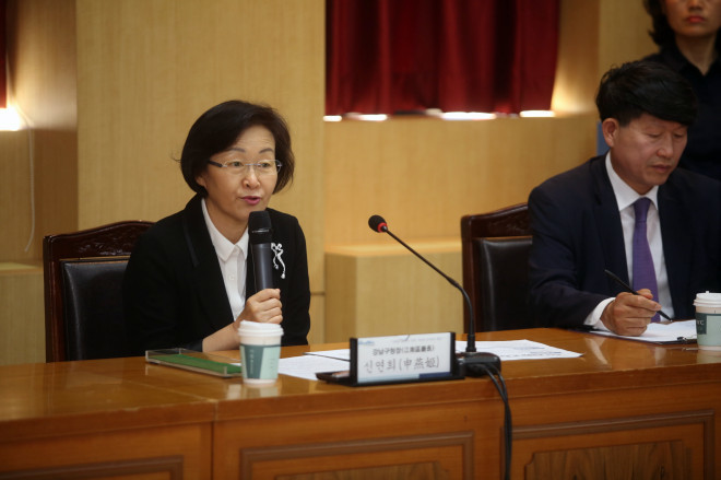 신연희 강남구청장(아래 왼쪽 다섯 번째)이 16일 오후 2시 서울 강남구청 큰회의실에서 강남구 문화를 체험하기 위해 방문한 중국 상해방송국(SMG) 교류단과 기념촬영을 하고 있다.