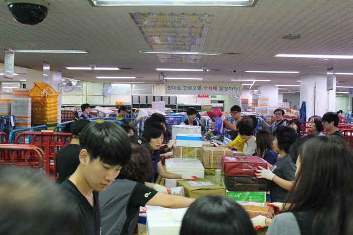 서울지방우정청이 오는 26일까지를 '추석우편물 특별처리기간'으로 정하고 비상근무체계에 돌입한 가운데 지난 17일 서울서초우체국 직원들이 배달을 위해 추석소포를 구분하고 있다. 이날 서초우체국에는 평소 물량의 2배에 가까운 2만2000통의 소포가 쏟아졌다.(사진제공=서울지방우정청)