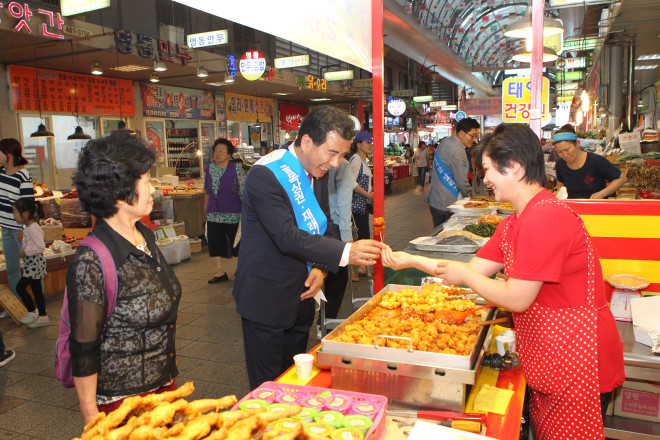 강동구의회 성임제의장, 전통시장 상인들 응원