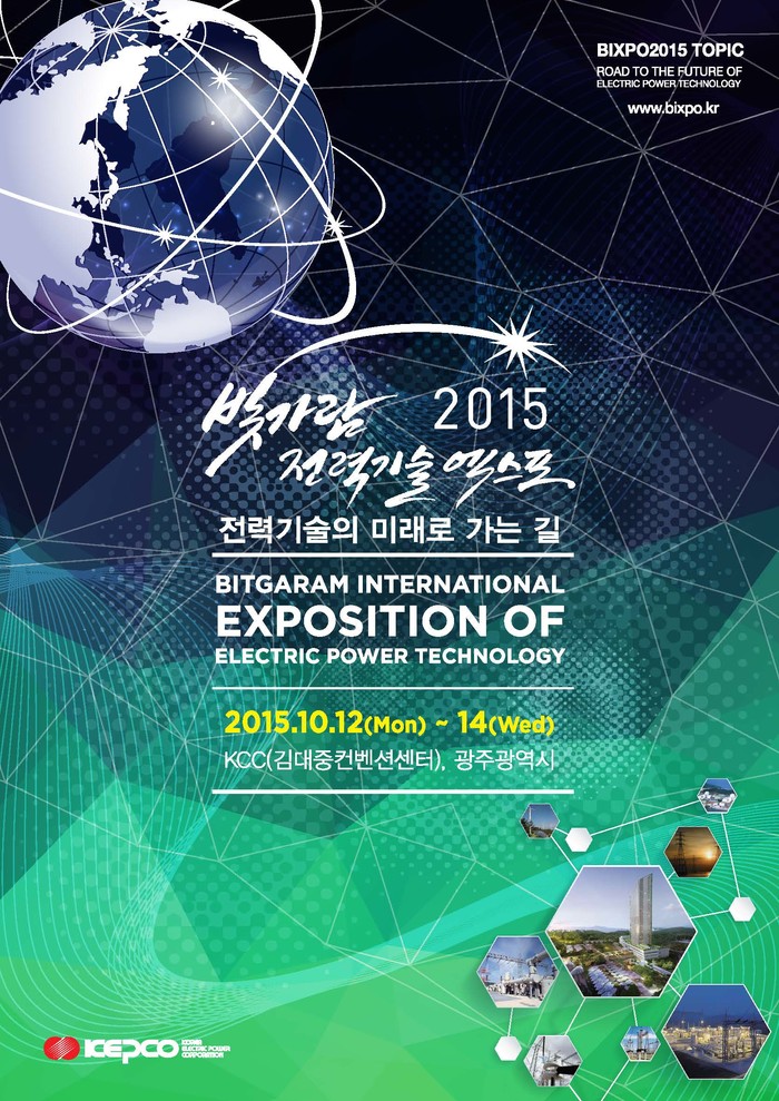 한국전력(사장 조환익)은 본사 이전 지역을 세계 에너지산업 허브(Hub)로 만든다는 '에너지밸리' 구축 일환으로 오는 10월12~14일 광주 김대중컨벤션센터에서 세계 최초 전력분야 엑스포인 빛가람 국제 전력기술 엑스포(BIXPO 2015, Bitgaram International Exposition of Electric Technology)를 개최한다.