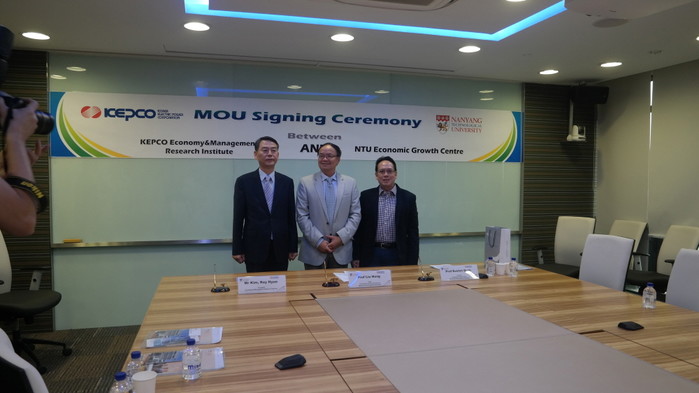 한전 경제경영연구원(KEMRI, Kepco Economy Management Research Institute)은 지난 15일 싱가포르 난양 이공대학 경제연구센터(NTU Economic Growth Centre)와 전력산업 및 전력시장분야의 국제 연구협력 및 공동연구를 주요 내용으로 하는 연구협력 MOU를 체결했다.