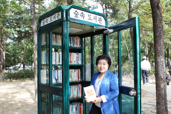 임춘희의원은 “공중전화부스를 재활용한 이동식 작은도서관은 비록 작지만 구민가까이에서 책 읽기 활성화에 큰 기여를 한다고 생각한다.”며, “행정복지위원장으로서 숲 속 작은도서관처럼 구민의 일상생활에 와 닿을 수 있는 의정활동을 펼치겠다.”고 말했다.