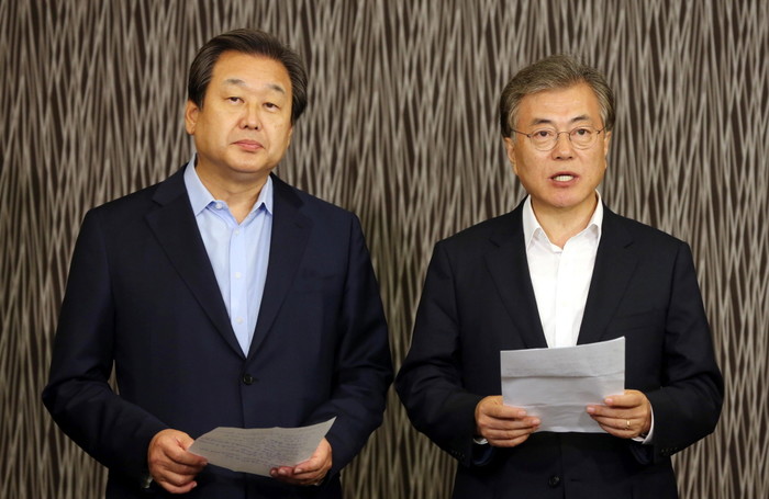 한편 친박계 중진 서청원 최고위원과 김태호·이인제 최고위원은 전날 김 대표가 문 대표와의 회동 결과를 설명하기 위해 주재한 긴급 최고위원회의에 불참했으며, 이정현 최고위원은 회의에는 참석했지만 불편한 모습이 역력했다.