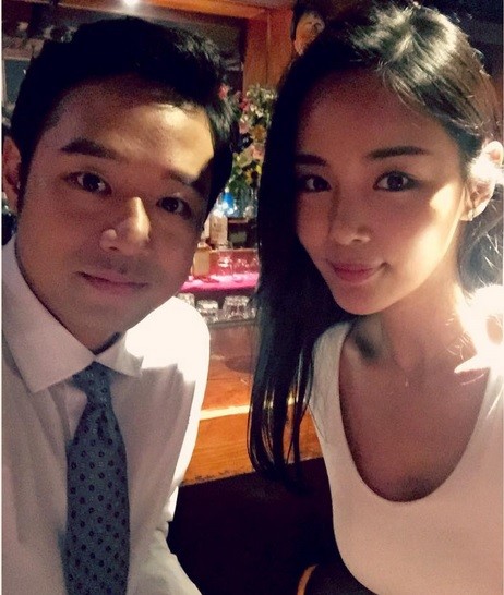 조정민은 공개된 사진 속에서 새하얀 원피스를 입은 체 천정명과 나란히 얼굴을 맞대고 있다.