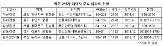 한 부동산정보업체에 따르면 서울·수도권에서 2013년에 입주한 아파트는 총 131개 단지 8만1865가구로 서울 2만3029가구, 경기 4만9552가구, 인천 9284가구로 조사됐다. 이 가운데 1000가구가 넘는 대단지들이 주목받고 있다.