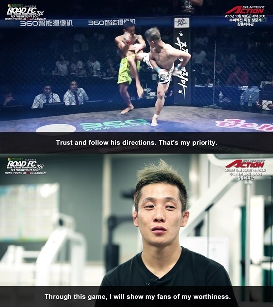 '360GAME ROAD FC 026'에서 중국 파이터 허난난과 대결을 앞둔 홍영기는 최근 인터뷰에서 "상대 선수가 어떻든 간에 나는 감독님을 100% 신뢰하기 때문에 감독님의 지시를 잘 수행하려고 한다"고 경기에 임하는 전략을 공개했다.