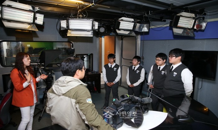 최근 경기 화성시에서 기안중학교 학생 4명이 자유학기제 시행에 따라 청소년들에게 다양한 진로탐색의 기회를 제공하는 ‘공무원 직업 현장체험’에 참여해 방송 스튜디오 체험을 하고 있다.(사진제공=화성시청)