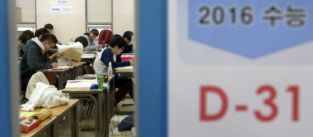 2016학년도 대학수학능력시험을 한달여 앞둔 12일 오후 서울 중구 종로학원에서 수험생들이 막바지 공부를 하고 있다.