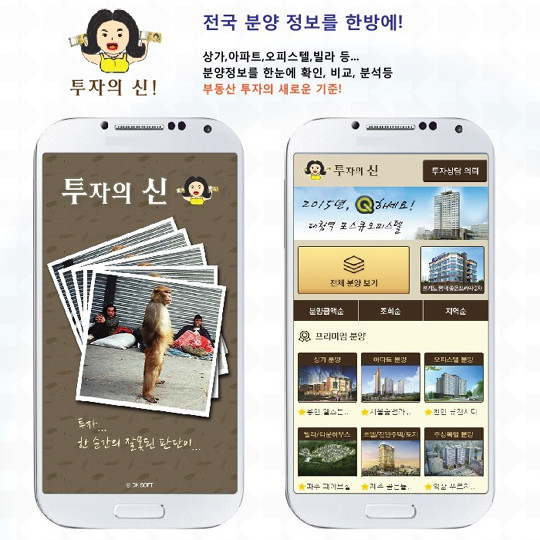 지금까지는 투자자가 발로 뛰어 제한적인 분양정보와 한정된 투자처를 알 수 있었지만 '투자의 신' 어플은 아파트 분양, 수익형 호텔 분양, 오피스텔 분양, 상가 분양, 빌라 분양, 타운하우스 분양까지 투자자들이 알기 쉽고 사용하기 편리하게 만들어 졌다.