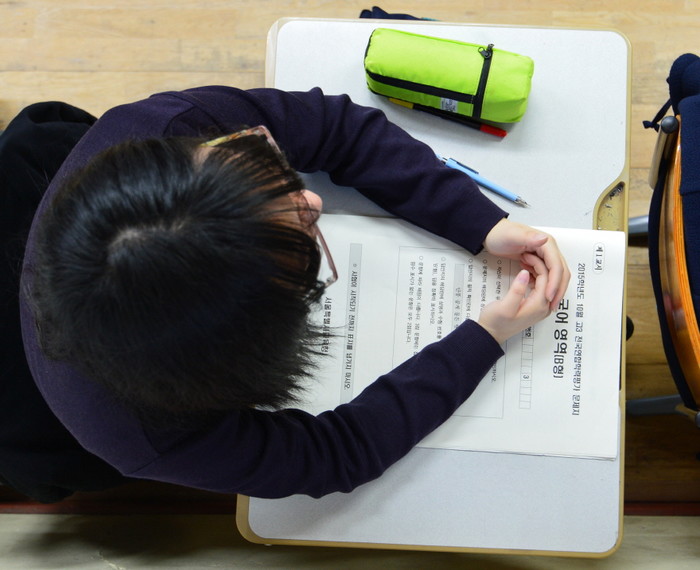 2016학년도 대학수학능력시험을 한 달 앞둔 13일 오전 서울 종로구 풍문여자고등학교에서 학생들이 수능 전 마지막 고3 전국연합학력평가 시험 답안지를 작성하고 있다.
