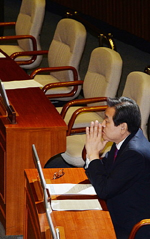 14일 오전 서울 여의도 국회에서 열린 제337회 국회(정기회) 제7차 본회의에서 새누리당 김무성 대표가 생각에 잠겨 있다.