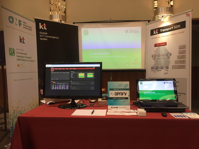또한 KT는 이번 전시에서 실제 여러 제조사의 장비로 구성된 네트워크 환경에서 T-SDN 솔루션으로 신속하게 최적경로를 검색하는 시연을 세계 최초로 선보였다. 이를 통해 통신사업자로는 유일하게 SDN 솔루션 쇼케이스에 “상용 네트워크에 적용된 T-SDN 플랫폼”으로 소개돼 국내외 사업자들로부터 높은 관심을 일으켰다.