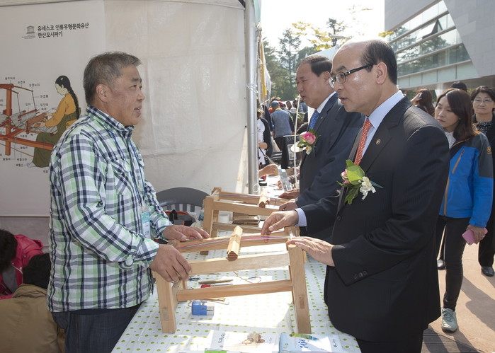 '자연과 사람이 하나되는 여행, 생태관광!'을 주제로 지난 16일 서울 도봉구 북한산국립공원에서 열린 '제1회 생태관광 페스티벌' 개회식에 참석한 정연만 환경부 차관(오른쪽)이 홍보부스를 둘러보고 있다.