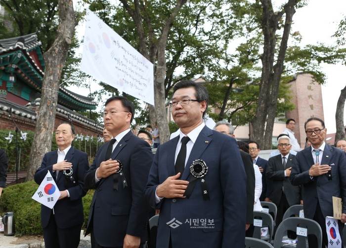 이어 추모행사로 헌시 낭독, 헌무 공연(살풀이 춤)을 비롯해 추모합창, 만세삼창이 진행됐다.