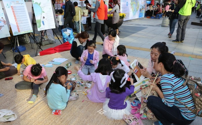 지난 17일 서울 관악구 구청광장에서 '제2회 마을박람회'가 열린 가운데 전통놀이 체험마당을 찾은 아이들이 전통놀이 기구 만들기에 몰두하고 있다. (사진제공=관악구청)
