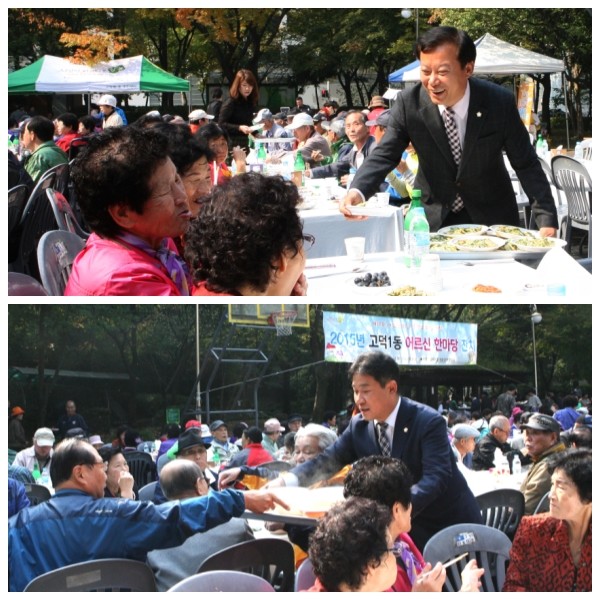 서울특별시 강동구의회(의장 성임제) 조용구 의원(강일동, 고덕1.2동)과 이준형 의원(강일동, 고덕1.2동)은 지난 16일 두레근린공원에서 개최된 ‘고덕1동 어르신 한마당 잔치’에 참석하여 어르신들께 음식나눔 봉사를 하며 어르신들이 오래오래 건강하시기를 기원했다. (사진제공=강동구의회)