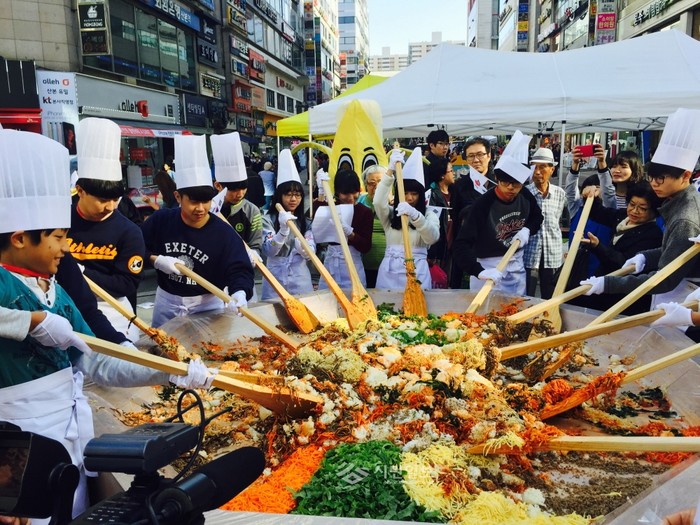 군포시서 대형 태극기 300인분 비빔밥 만들기 눈길