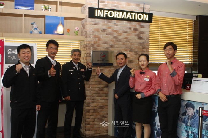 경기 양주소방서는 27일 다중이용업소의 자율적 안전문화 정착과 안전에 대한 시민들의 알권리를 제공하기 위해 안전관리가 우수한 고읍동 롯데시네마에 대해 '다중이용업소 안전관리 우수 업체 지정 현판식'을 진행해 관계자들이 기념촬영하고 있다.(사진제공=양주소방서)