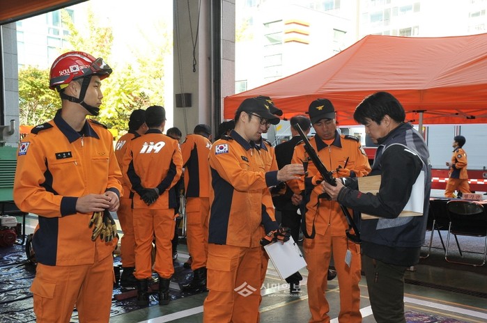 서울 동작소방서는 지난 28일 서울소방재난본부 점검단 20명이 소방서를 방문해 '2015년 소방장비 확인점검'을 실시했다. 사진은 로프발사총 확인점검을 하는 모습.(사진제공=동작소방서)