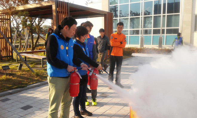 경기 안성시 공도건강생활지원센터에서는 최근 공도119안전센터와 함께 공도건강생활지원센터 전직원을 대상으로 '소방안전교육 및 대피훈련'을 실시했다. 사진은 교육에 참석한 관계자들이 소화기 사용 실습을 하는 모습.(사진제공=안성시청)