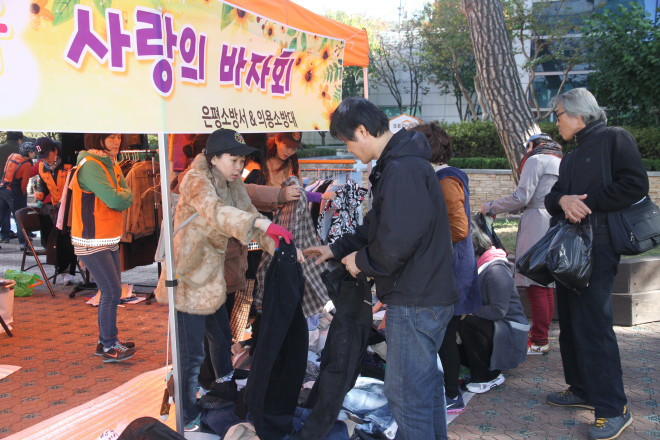 서울 은평소방서 의용소방대는 지난 30일 구청 소나무광장에서 '행복나눔 사랑의 바자회'를 개최했다. 사진은 바자회에 참여한 주민들이 물품을 구매하는 모습.(사진제공=은평소방서)