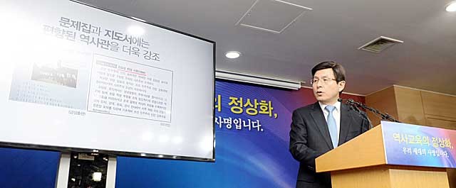 황교안 국무총리가 3일 오전 서울 종로구 세종대로 정부서울청사에서 중,고등학교 역사교과서 국정화 관련 대국민 담화를 발표하고 있다.