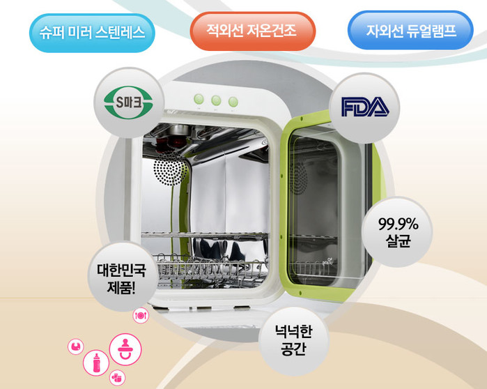 한편 유팡 젖병소독기는 뛰어난 소독력을 바탕으로 한국화학융합시험연구원에서 인증해주는 젖병용살균 S마크를 획득했으며, 미국 FDA 정식의료기기로 등록돼 안전성이 증명되기도 했다.