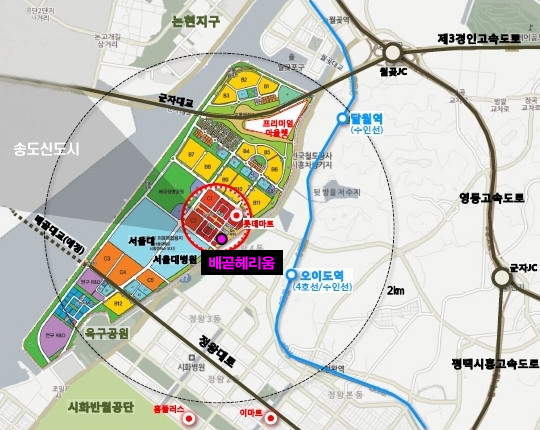 시흥 배곧신도시 ‘배곧 헤리움’ 상가 오피스텔은 바로 앞에 위치한 서울대 글로벌 캠퍼스와 서울대의료원(예정) 5200여명, 서배곧신도시 5만6000명, 시화·반월 스마트허브 26만명, 시화 MTV(멀티테크노밸리) 7만명, 남동산업단지 8만5000명 등 총 40만명의 배후수요를 갖추고 있다.