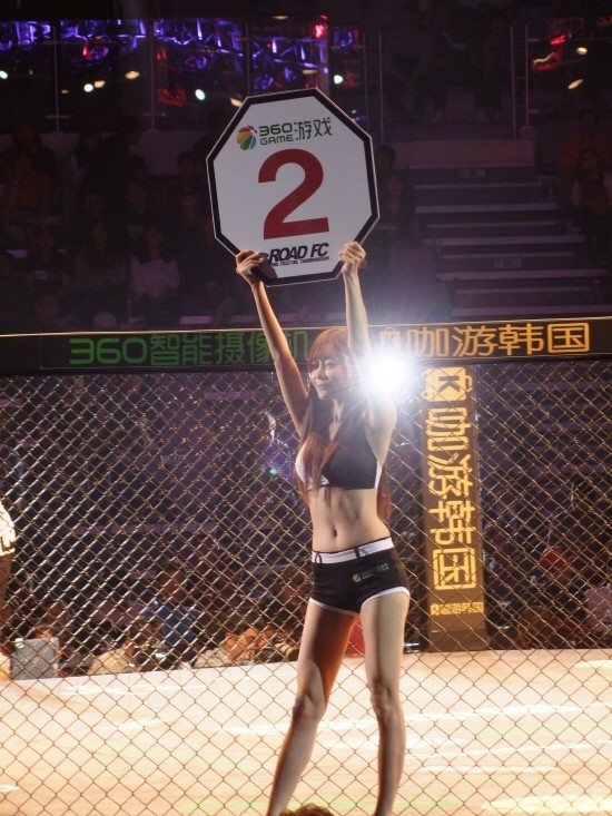 8일 한 인터넷 커뮤니티에는 로드걸 최슬기가 로드FC 대회에서 라운딩을 하고 있는 사진들이 공개됐다. 사진 속 최슬기는 인형같은 얼굴과 군살 없는 몸매를 선보이며 라운딩을 하고 있다.