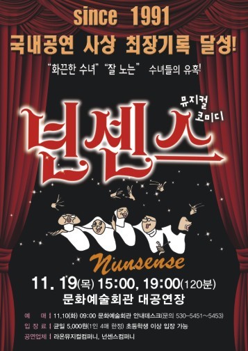 다섯 명의 수녀가 동료들의 장례비용을 마련하기 위해 자선공연을 펼친다는 내용의 코미디 뮤지컬 ‘넌센스’는 남녀노소를 초월한 전 국민적인 인기 속에 뮤지컬 부흥을 이끌어온 한국의 대표 공연으로 꼽히고 있다.
