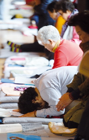 2016학년도 대학수학능력시험을 나흘 앞둔 8일 오후 서울 종로구 조계사 대웅전에서 불자들이 자녀의 고득점을 기원하며 기도하고 있다.