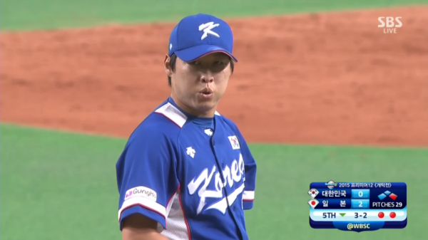 8일 일본 홋카이도 삿포로돔에서 벌어지는 2015 프리미어12 한국과 일본의 개막전에서 3점을 허용했다. 대표팀은 2회 2점, 5회 1점을 허용했다.