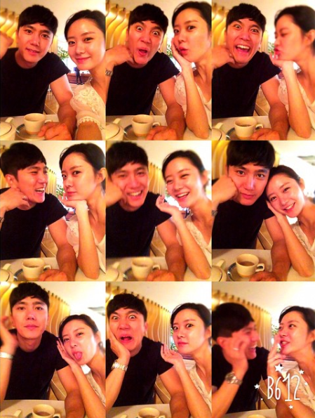 당시 사진에서 한그루와 남편은 나란히 앉아 다양한 표정을 지어보였다. 특히 엽기적인 표정을 지은 한그루의 남편이 시선을 사로잡고 있다.