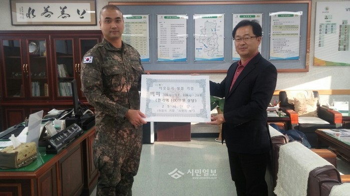 육군 제25사단, 쌀 380kg 남면사무소에 전달