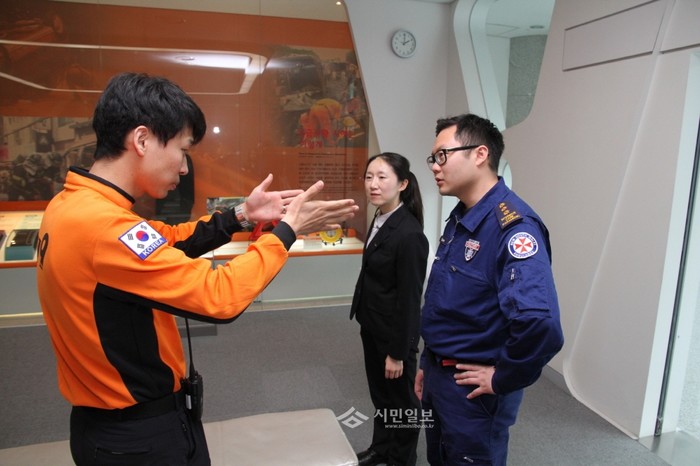 서울 동작소방서는 최근 호주 소방관(Paramedic) 1명이 동작소방서를 방문해 서울종합방재센터, 보라매안전체험관 견학 및 백운119안전센터 구급차 동승체험을 했다. 사진은 호주 소방관이 보라매체험관 견학을 하는 모습.(사진제공=동작소방서)