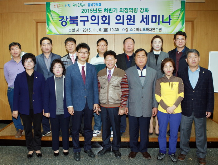 한편 구의회는 '소통하는 의정 구민중심의 강북구의회'를 실현하기 위해 매년 의원세미나를 실시해 의정활동 전문성과 내실있는 입법의회로서의 기능을 강화해 나가고 있다.