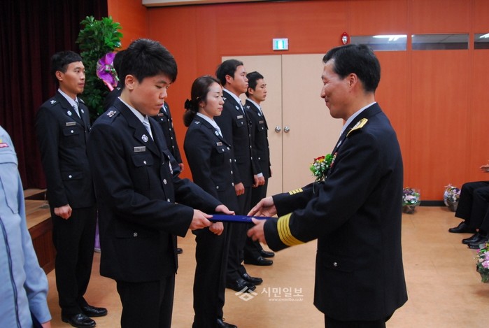 경기 하남소방서는 지난 9일 소방서 대회의실에서 전직원 및 의용소방대원 등 150여명이 참석한 가운데 '제53주년 소방의 날 기념행사'를 실시했다. 사진은 김옥식 서장이 소방행정 발전에 기여한 유공자들에게 표창을 수여하는 모습.(사진제공=하남소방서)