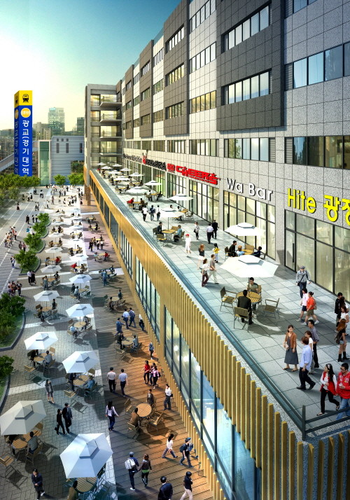 차별화된 설계도 집객유도에 유리하도록 했다. 상가 건물 앞쪽으로 25m에 이르는 큰 광장을 끼고 있어 주목도가 높고, 더욱 많은 유동인구의 유입이 예상된다. 광교신도시내 유일하게 학교환경위생정화 구역에 포함되지 않은 상권으로 다양한 프랜차이즈 업종의 진입이 가능하다.