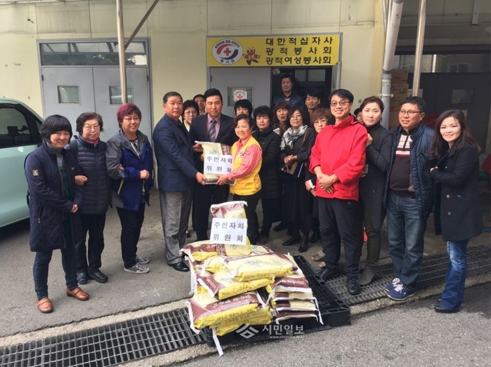 경기 양주시 광적면 주민자치위원회는 10일 광적면사무소에서 지역내 불우이웃돕기에 써달라며 조양중학교 학생들의 손모내기 체험 활동을 통해 수확한 쌀을 광적면적십자여성봉사회(10kg 22포)와 푸드뱅크(10kg 10포)에 각각 전달했다.