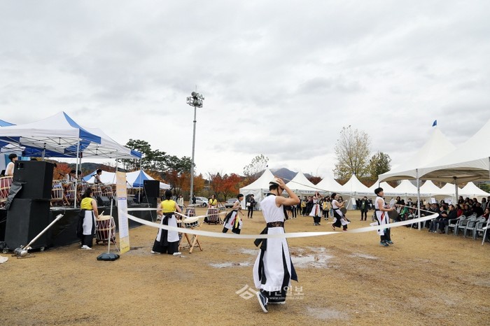 경기 가평교육지원청은 지난 7일 가평군 자라섬에서 '제3회 물별숲 생태체험·예술 페스티벌'을 개최했다. 사진은 행사 중에 문화예술공연마당에서 사물놀이가 진행되는 모습.(사진제공=가평교육지원청)