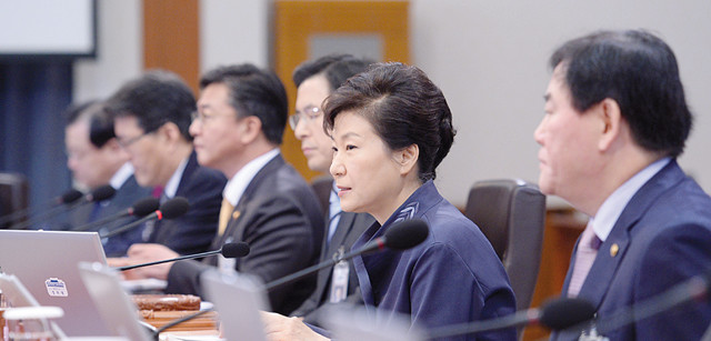 박근혜 대통령이 10일 오전 청와대에서 열린 제48회 국무회의에 참석, 모두발언을 하고 있다. 박 대통령은 이날 국무회의에서 위안부 문제가 최대한 조기에 해결되도록 해달라고 국무위원들에게 지시했다.