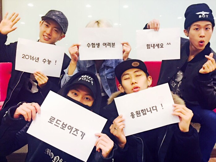 로드보이즈의 소속사 측은 "2016년 수능! 수험생 여러분 힘내세요^^ 로드보이즈가 응원합니다!"라는 짧은 글이 적힌 종이를 들고 카메라를 응시하고 있는 멤버들의 모습이 담긴 사진을 공개했다. 사진 속에서 멤버들은 쑥스러운 듯 카메라를 향해 미소를 짓고 있거나 종이로 얼굴을 가리는 등 풋풋한 모습이 담겨 있다.