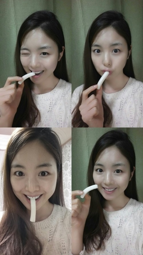사진 속에는 '농업인의 날'과 '가래떡데이'를 맞이해 가래떡을 입에 물고 카메라를 응시하고 있는 한지우의 모습이 보는 이들의 눈을 사로잡는다. 가래떡을 먹고 있는 한지우의 청순하고 귀여운 표정이 식욕을 자극한다.