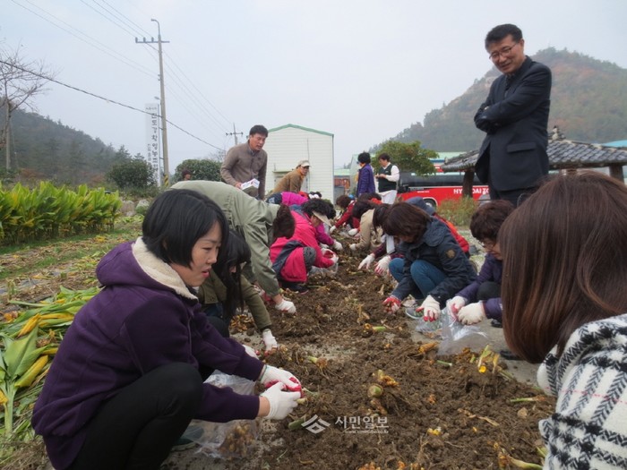 국립농산물품질관리원 전남 해남·진도사무소는 지난 10일 소비자단체 회원 40여명을 초청, 진도강황영농조합법인에서 지리적표시 우수등록단체 현장체험행사를 개최했다. 사진은 행사에 참석한 관계자들이 울금을 수확하는 모습.(사진제공=진도군청)
