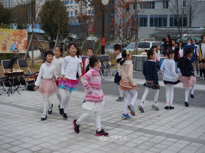 경북 구미시 문장초등학교는 최근 문성 생태공원내 여우광장에서 제2회 '꿈과 끼를 펼치는 가을마당'인 문장초 작은 발표회를 진행했다. 사진은 발표회에서 학생들이 준비한 공연을 펼치는 모습.(사진제공=구미교육지원청)