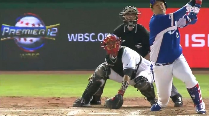 11일 대만 타오위안 구장에서 열린 2015 프리미어12 조별리그 2차전 한국과 도미니카공화국의 경기에서 한국은 이대호의 역전 투런 홈런에 힘입어 2대 1로 역전했다.