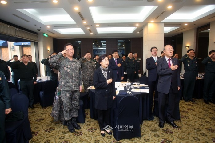 지난 11일 신연희 서울 강남구청장(가운데)이 오전 11시 서울 강남구 소재의 호텔에서 열린 '예비군 동대장 간담회'에 참석했다. 신 구청장은 이날 간담회에서 향토방위에 앞장 서고 있는 동대장들에게 감사의 말을 전했다.(사진제공=강남구청)